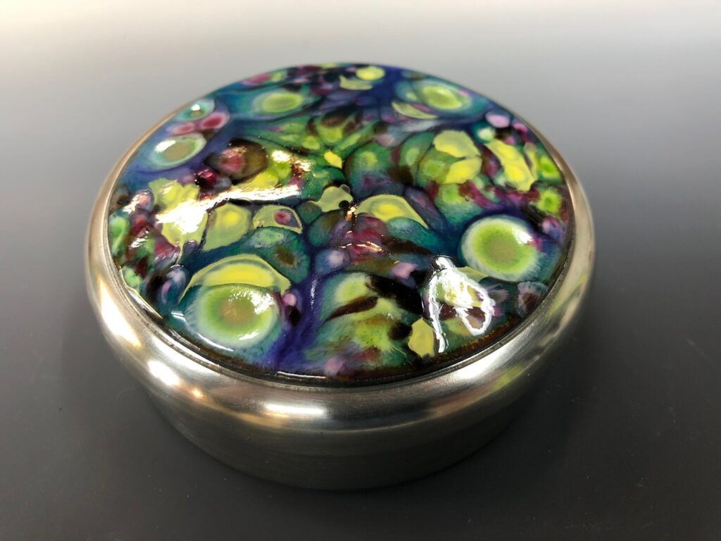 Autumn sets me on fire – enticing me to create pieces with some of my most beloved vibrant yellows, reds, and oranges.  I also find the same peace while enameling that I find in nature.  I hope once my project is completed, I can pass that peacefulness as well as happiness on to others through my work, into which I have poured my heart.  I hope that the shapes and colors that they witness in my work will give them for years and generations to come the wide spectrum of feelings and emotion captured only in nature.